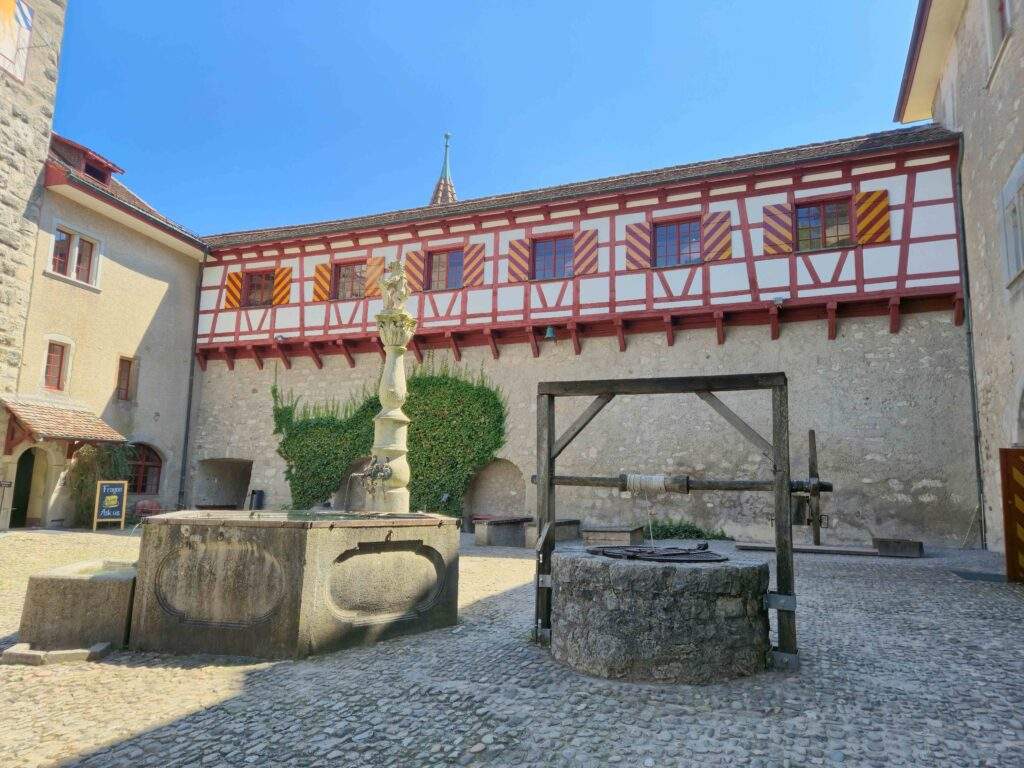 Mit dem grossen, neuen Bus der Firma Meyer ging die Fahrt weiter zum Zürichsee und mit der Fähre weiter auf die andere See Seite. Nach einem feinen Mittagessen in Kyburg machen wir uns auf den Weg zum Schloss Kyburg. Bei einer kurzen Führung erfuhren wir mehr zu den früheren Machtverhältnissen in dieser Gegend. In Inneren vom Schloss, hatten wir Einblick in das Leben in früheren Zeiten. In der Zwischenzeit hatte die Sommerhitze nochmals mit voller stärke eingesetzt, so dass wir die Weiterfahrt im gekühlten Bus sehr schätzten und uns etwas erholen konnten. Den Zwischenstopp in Winterthur nutzen die meisten Frauen um sich mit einer Glace oder einem kühlen Getränk auch von innen zu kühlen. Nach einem schönen, abwechslungsreichen Tag ging die Fahrt staufrei am Rhein entlang nach Hause.